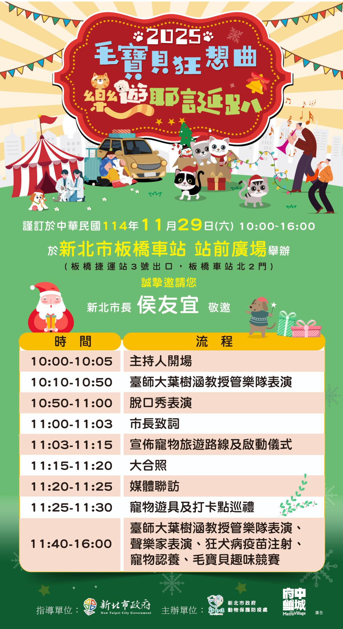 毛寶貝狂想曲樂遊耶誕趴以寵物樂遊為主題,將邀請國立臺灣師大管樂隊共同演出,並配合政令宣導,旨在提倡飼主陪伴寵物的重要性,普及正確的飼養觀念。在政策上大力推動寵物旅遊與健康產業的發展,藉由活動讓更多飼主能帶寵物共同出遊,並促進寵物與飼主間的感情。