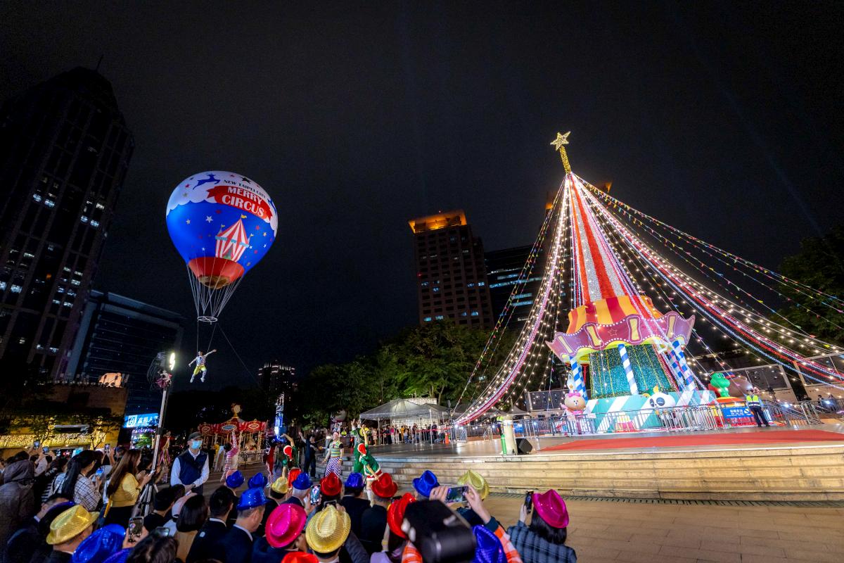 「2025新北歡樂耶誕城」今年與全球知名IP「LINE FRIENDS & LINE FRIENDS minini」合作,共同打造一場童趣療癒、繽紛歡樂的年度耶誕盛會,今(14)晚首先進行「耶誕馬戲開城SHOW」,點亮象徵夢想與歡樂的耶誕樹「歡樂馬戲棚」以及周邊主題燈區裝置與璀璨燈飾!活動更呼應「馬戲團嘉年華」主題,特別加碼《夢想啟航・飛行馬戲團》大秀,演出以「夢想啟航」為意象,結合大型空飄熱氣球裝置、高空絲綢特技、互動式馬戲巡演與視覺光舞秀,打造出全臺唯一「空中×地面」雙軸互動式演出,讓現場民眾彷彿置身馬戲嘉年華,沉浸式感受馬戲獨特的魅力與熱力。